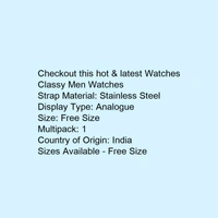 Checkout this hot & latest Watches Classy Men Watches Strap Material: Stainless Steel Display Type: Analogue Size: Free Size Multipack: 1 Country of Origin: India Sizes Available - Free Size *Proof of Safe Delivery! Click to know on Safety Standards of Delivery Partners- https://ltl.sh/y_nZrAV3